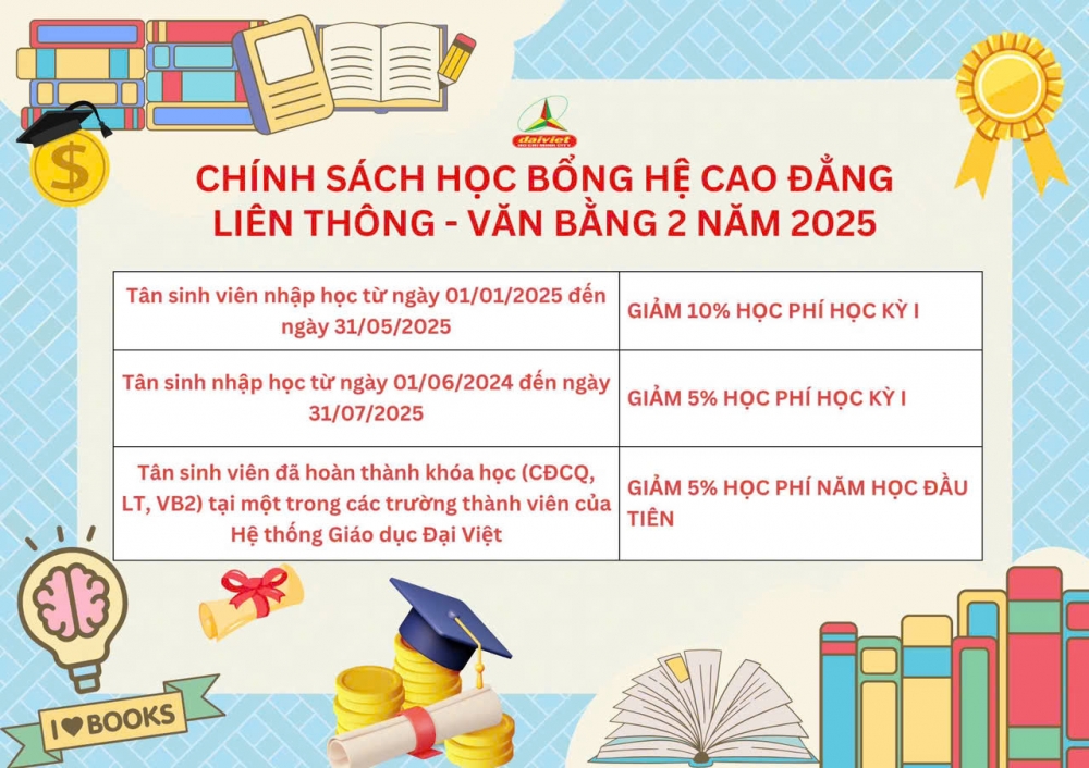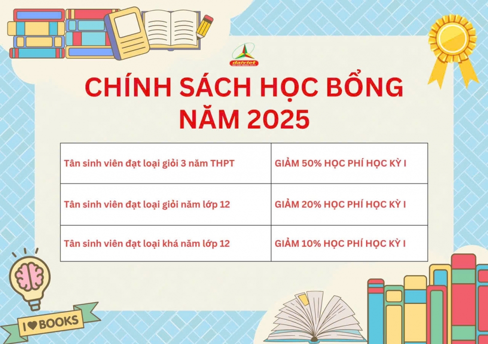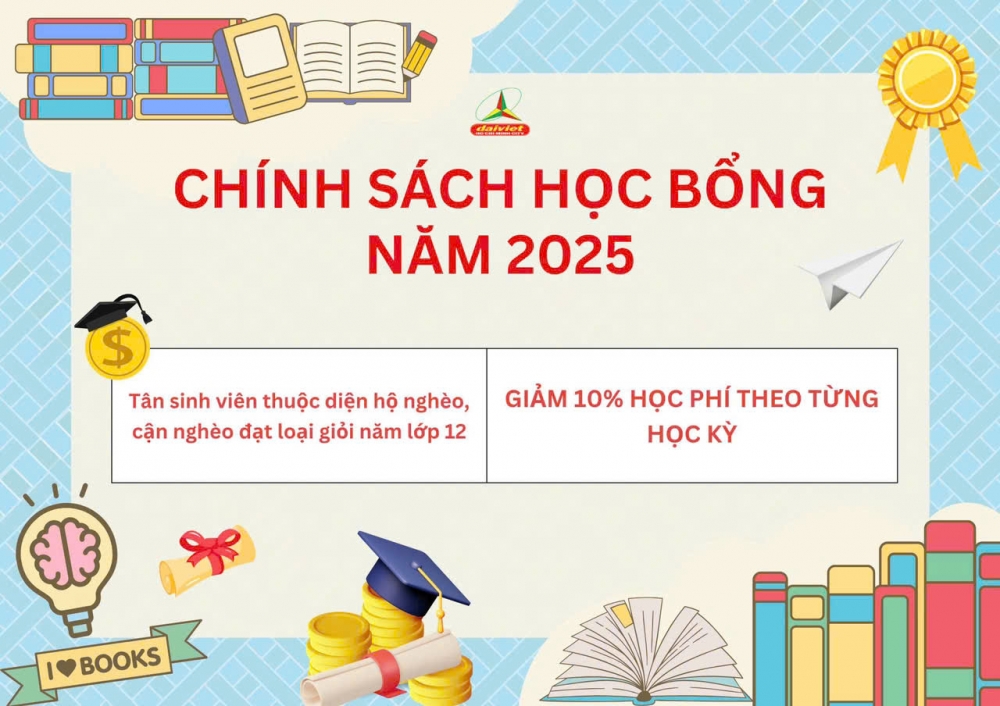 CƠ HỘI VÀNG - CHÍNH SÁCH HỌC BỔNG NĂM 2025 TẠI TRƯỜNG CAO ĐẲNG ĐẠI VIỆT SÀI GÒN!