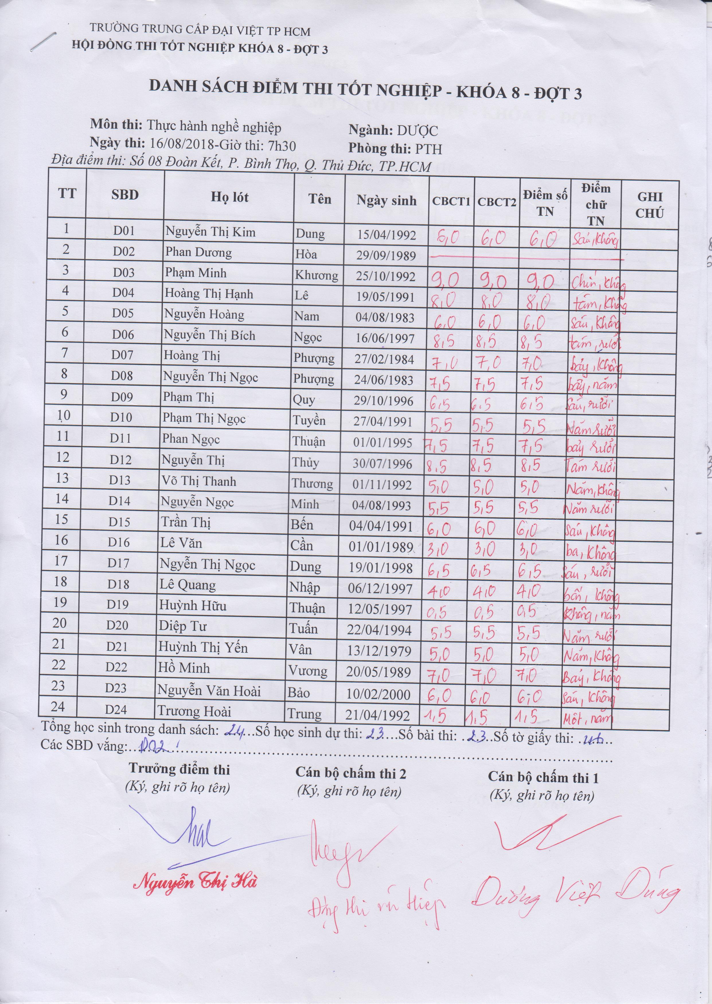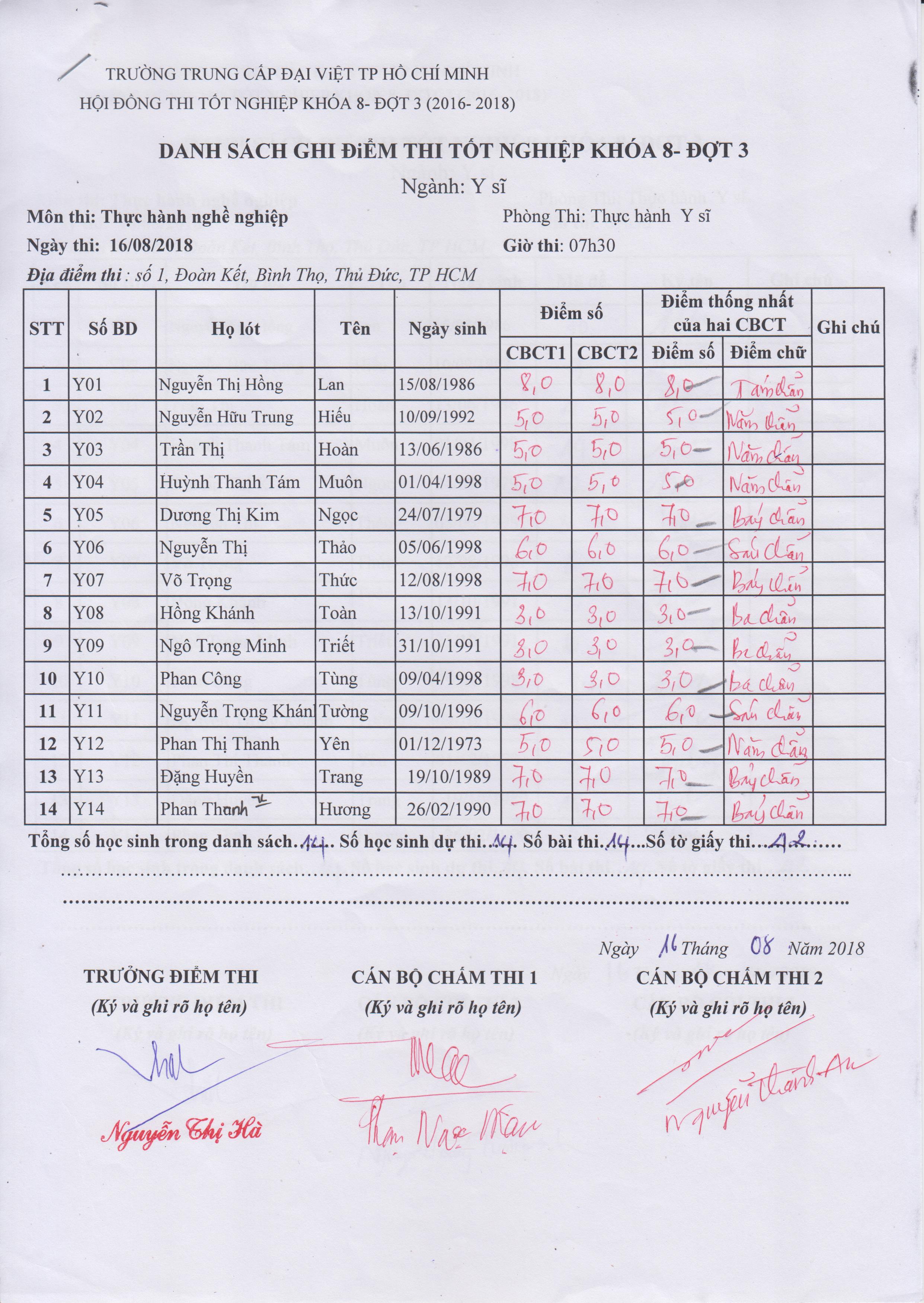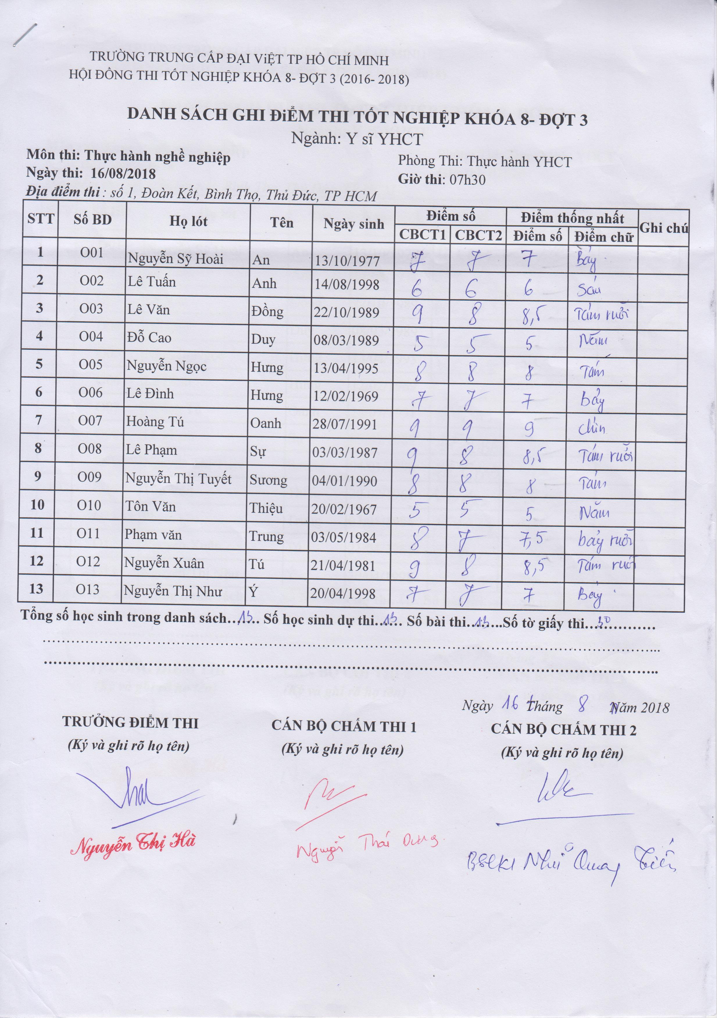 KẾT QUẢ THI TỐT NGHIỆP KHÓA 8 (2016-2018) - ĐỢT 3, NGÀY THI 15 - 16/08/2018 ( FILE ĐÍNH KÈM)