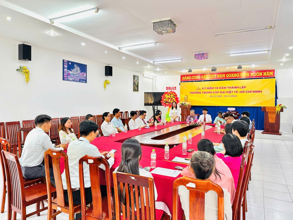 Ngày 26/12/2024, Trường Trung cấp Đại Việt TP. Hồ Chí Minh đã long trọng tổ chức họp mặt kỷ niệm 16 năm ngày thành lập Trường (26/12/2008 - 26/12/2024).