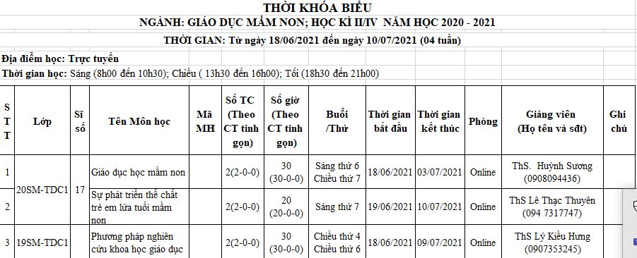 Lịch học trực tuyến môn Giáo dục học mầm non, Sự phát triển thể chất TEMN, PP nghiên cứu KHGD