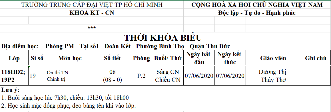 Lịch ôn thi tốt nghiệp môn Chính trị hệ Trung cấp