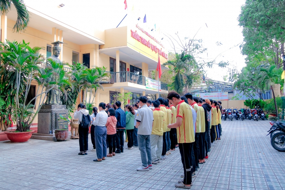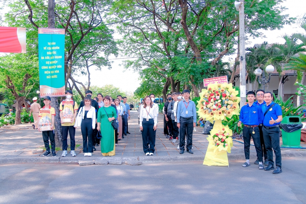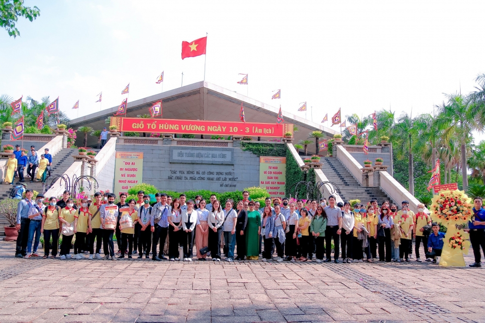 Sáng ngày 17/04/2024, tại Công viên lịch sử Văn hóa Dân tộc Đền Hùng (Quận 9, TP.HCM), Ban Giám Hiệu cùng toàn thể CBNV, giảng viên và sinh viên do ThS Lê Thị Bích Thảo- Phó hiệu trưởng Trường CĐ Đại Việt Sài Gòn làm trưởng đoàn, đã tham gia thực hiện nghi thức dâng hương, dâng hoa để tưởng nhớ và tôn vinh công lao của các Vua Hùng. Trong không khí trang nghiêm trước anh linh các Vua Hùng, đoàn đại biểu của trường đã bày tỏ lòng biết ơn đối với những đóng góp to lớn của các Vua Hùng và hứa sẽ tiếp nối truyền thống của tổ tiên.