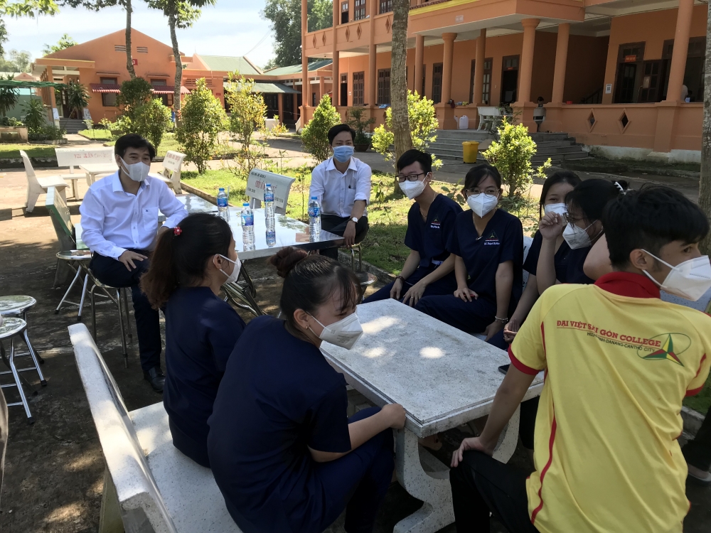 Tại mỗi điểm đến, lãnh đạo nhà trường đã trao đổi với các đại diện của các đơn vị y tế về tình hình dịch bệnh cũng như công tác phòng chống dịch tại địa phương. Nhà trường cũng thăm hỏi tình hình sức khỏe, động viên, khích lệ và biểu dương tinh thần làm việc của các tình nguyện viên; đồng thời nắm bắt những thuận lợi, khó khăn trong quá trình thực hiện nhiệm vụ.