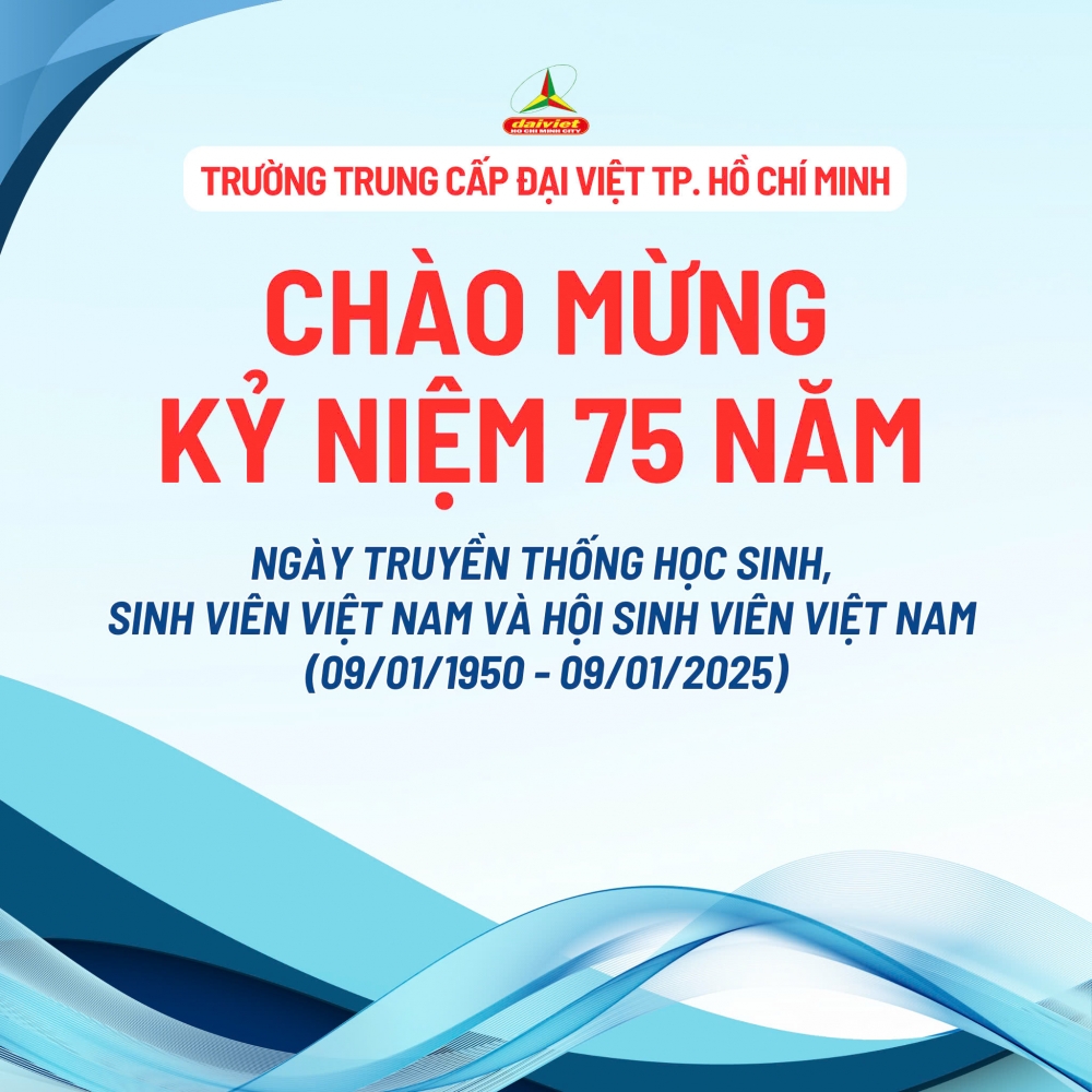 Kỷ niệm 75 năm Ngày truyền thống học sinh - sinh viên Việt Nam không chỉ là dịp để chúng ta tri ân những thế hệ đi trước mà còn là lời nhắc nhở về trách nhiệm của mỗi học sinh, sinh viên trong việc tiếp nối truyền thống tốt đẹp ấy. Trường Trung cấp Đại Việt TP.HCM tự hào là nơi nuôi dưỡng những tài năng trẻ, góp phần xây dựng một thế hệ học sinh, sinh viên bản lĩnh, tri thức và giàu nhiệt huyết.